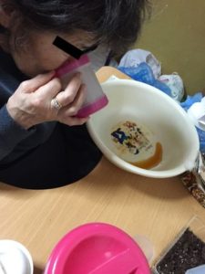 母に、うがいをさせてました。