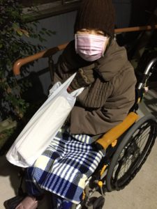 下記は、車イスに座りながら母と一緒に焼き肉を食べた画像です。